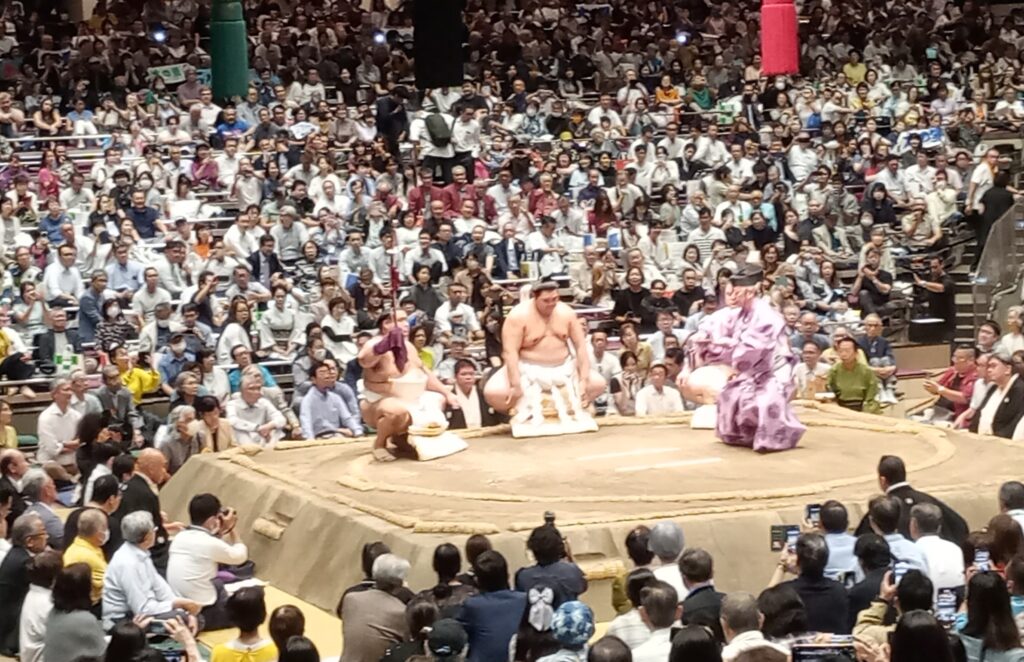 午前中に現場でのコンクリート打ちを終えて、久しぶりに相撲観戦に出かけてまいりました。少し早めに行って十両の取り組みから見てみたいと思い、午後二時に両国国技館に到着しました。