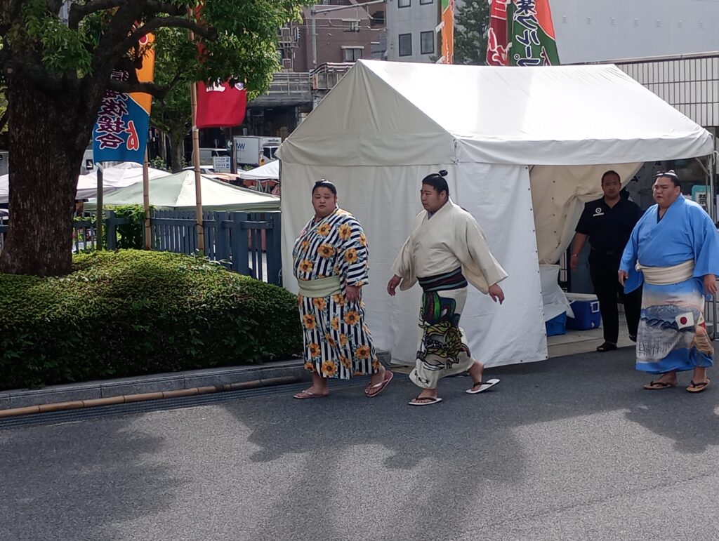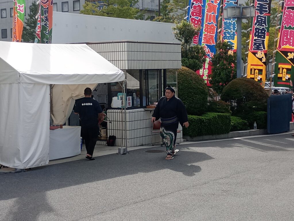 するとその時間帯はちょうど幕内力士が入場してくる時間帯だったこともあり、幸運にも多くの力士を入り待ちすることが出来ました。