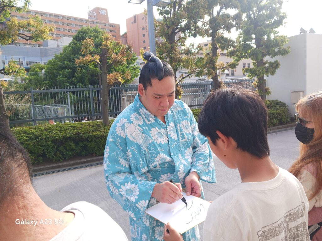 十両の取り組みを終えた力士の出待ちをすることもできました。
