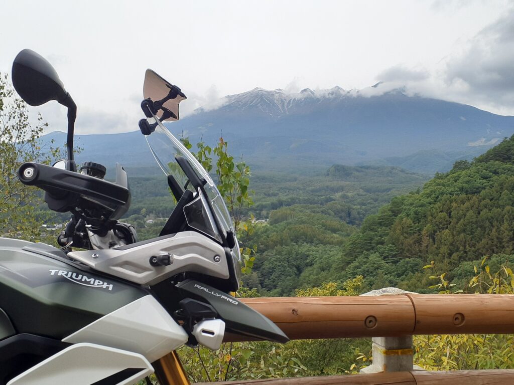 投稿日: 2023年10月16日2023年12月5日 投稿者: dobokuya2023年10月8日 秋のロングツーリング(広島国道2号BP)初日 信州R152~飛騨R361~越前R158 Triumph Tiger 900 Rally Pro 春の徳島、名古屋に続きまして、秋も広島への出張のお仕事をいただくことができました。もちろん移動手段はバイクということで、今回も愛車Triunmph Tiger900 Rally Proで広島を目指すこととしました。この日は昼から雨予報が出ていましたのでルート選択に苦労しました。各地の予報をいろいろと調べると北陸地方が午後3時ごろまでは天気が持ちそうだったので、経由地として北陸を選択しました。中央道諏訪南ICからツーリングルートR152、R361、R158を経由して福井県鯖江市に宿を取りました。写真は少し雪をかぶった雄大な御嶽山になります。 九頭竜川沿いのR158を快走できました。途中の九頭竜ダムにて休憩を取りました。