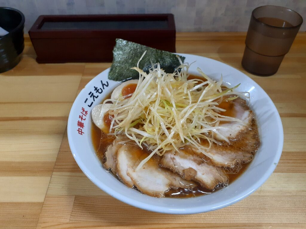 久しぶりに美味しいラーメンを食べに行こうということになりまして、数ある候補の中から日野市にあります『中華そば こえもん』さんにお邪魔しました。こちらのお店もかなりの人気店で、店前の行列は当たり前の人気店なのですが、この日は運よく待ち時間なしで入店できました。せっかくなので全部乗せともいえる『ネギバラチャーシュー麺』をいただきました。濃い目の醤油味に玉ねぎの甘みがほんのりと沁みだし、これが八王子ラーメンの人気の秘密かと思わせる美味しさでした。ごま油で和えた白髪ねぎや味玉子もしっかりとラーメンを引き立てて、大満足のラーメンに出会えました。妻も満足したようでリピート確実なお店になりました。(評価5.0点/5.0点)