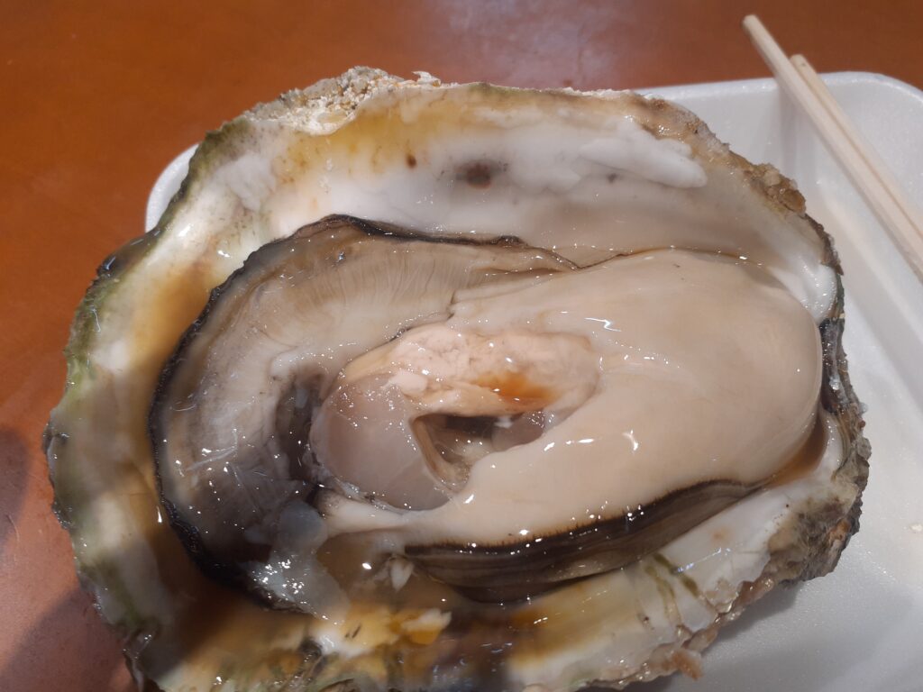 岩牡蠣巡りの締めくくりに石川県七尾市の食祭市場に寄りました。食祭市場は道の駅に併設されていて能登の海産物を中心にいろいろなグルメが楽しめるスポットになります。店頭に並ぶ特大の岩牡蠣をその場で開けていただくことが出来ます。写真ではわかりづらいのですが、本当に大きいんです。それまでの岩牡蠣は一口でも食べられるサイズでしたが、こちらの岩牡蠣をいただくには三口かかるほどです。お値段も1個千円ととてもリーズナブル。また来年もいただきたくなる能登の美味しい思い出になりました。(評価5.00点/5.00点)