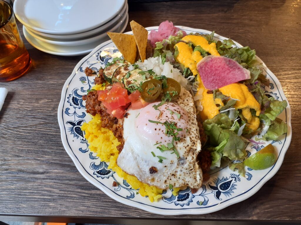 たまたま近くでお仕事をさせていただき、コンクリートが乾くまでの待ち時間でランチをいただいたいのがこちらのお店になります。通りすがりだったのですが、『メキシコ料理』の文字が目に留まり入店させていただきました。沖縄発祥のタコライスは大好きでよくいただくのですが、こちらはまさしく『本格派タコライス』といったところでしょうか。タコスミートとお野菜、目玉焼きなどのバランスがとても素晴らしい『ひと皿』で求めていたランチを発見できた思いです。メキシコ料理もかなり奥が深そうで、再訪が楽しみなお店でした。(評価4.75点/5.00点)
