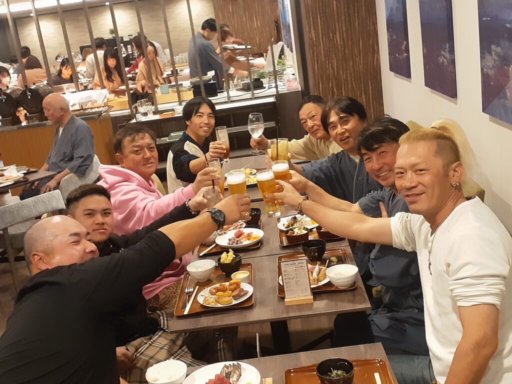 窓の外はこの絶景です。相模湾に浮かぶ伊豆大島と朝日のコラボレーションがとても素晴らしかったです。今年もいろいろなことがありましたが、皆様のご協力でなんとか無事に一年を収めることが出来ました。北海道旅行にも行けましたし、こうして忘年会ツーリングも開催できました。我が社としては、良い一年だったのではないかと思えます。来年もこうして一年を締められるように頑張ろうと思いました。