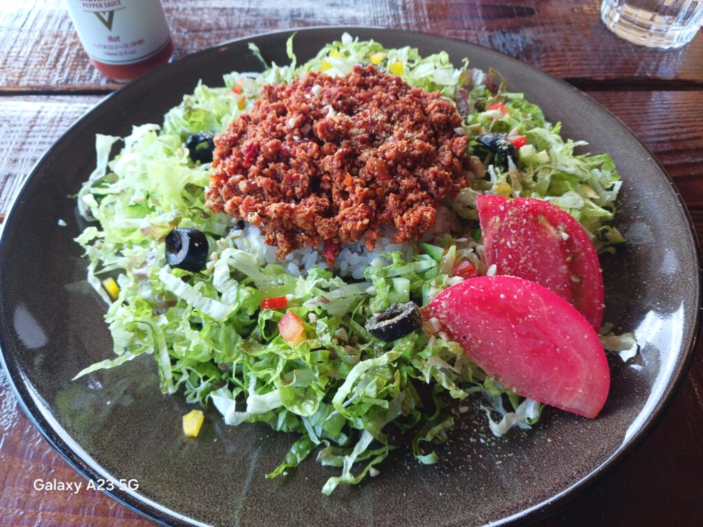 目の前の川のせせらぎが聞こえる居心地の良いカフェになります。大好物のタコライスと桃のスムージーをいただきました。タコライスもスムージーもとても手が込んでいて、たいへん美味しくいただきました。落ち着いた雰囲気で軽食をしたいときにお勧めなお店です。(評価4.50点/5.00点)