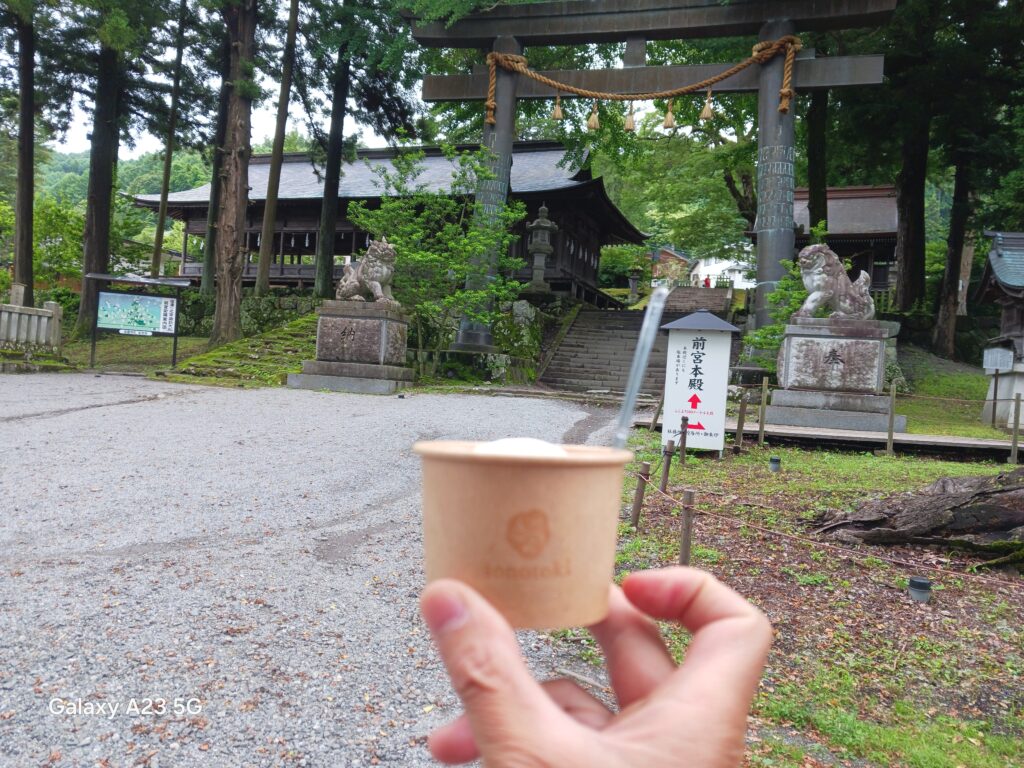 諏訪湖では大相撲荒汐部屋が合宿をしていたようです。上位で活躍中の若元春、若隆景兄弟などが所属する部屋になります。サイクリングの後のご褒美おやつをいただこうと、諏訪大社上社前宮にあるジェラート屋さんsonotokiさんでヘーゼルナッツのジェラートをいただきました。ヘーゼルナッツのコクと香りがミルクと相まって、心身ともに満たされました。(評価4.50点/5.00点)