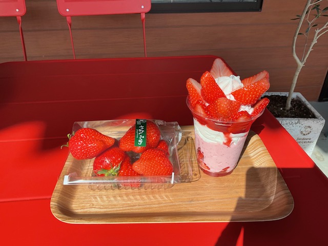 伊香保温泉街から榛名湖を抜けて、榛名神社の近くにある蕎麦屋さんを目指しましたが、残念ながら売り切れということで跳ね返されてしまいました。そのままバイクを走らせていると無性に『イチゴ』が食べたくなってきてしまいました。どこかでイチゴのパックでも買って食べようかと思っていたところに、『いちごスムージー』の看板を発見!まさに渡りに舟ということで、西山いちご園さんにお邪魔しました。いちご狩りなどはやってないようですが、いちごの販売といちごを使ったスィーツをいただけます。テラス席で贅沢にプレミアムなパフェと旬のいちごを追加していただきました。いちご欲を大満足させてくれたお店でした。(評価4.75点/5.00点)