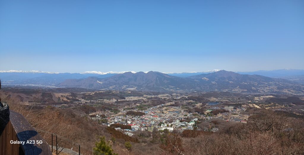 まずは伊香保町の上ノ山公園にある『ときめきデッキ』を訪れて、榛名山や赤城山、日光など北関東の山々を一望できる絶景ポイントになります。伊香保の温泉街からロープウェイでアクセスすることもできます。