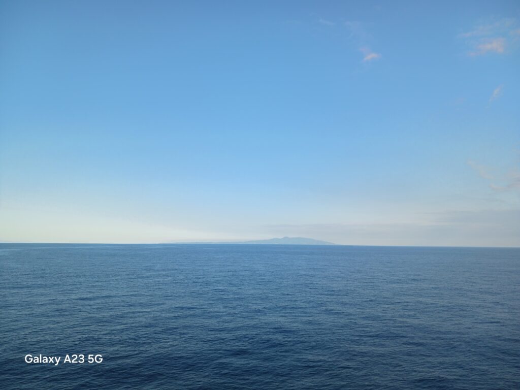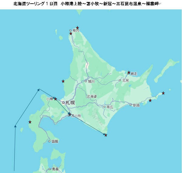 朝食をいただき宿を出発して、霧多布岬(湯沸岬)に行ってみました。立派な望遠レンズを備えたカメラを構えている方がいましたので、声をかけさせていただくと、ラッコがいることを教えてくれました。赤丸の中に2頭のラッコが浮かんでいるのが見えます。