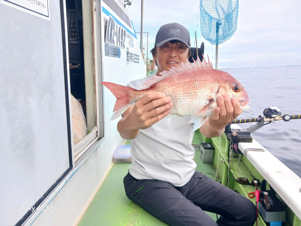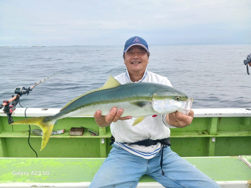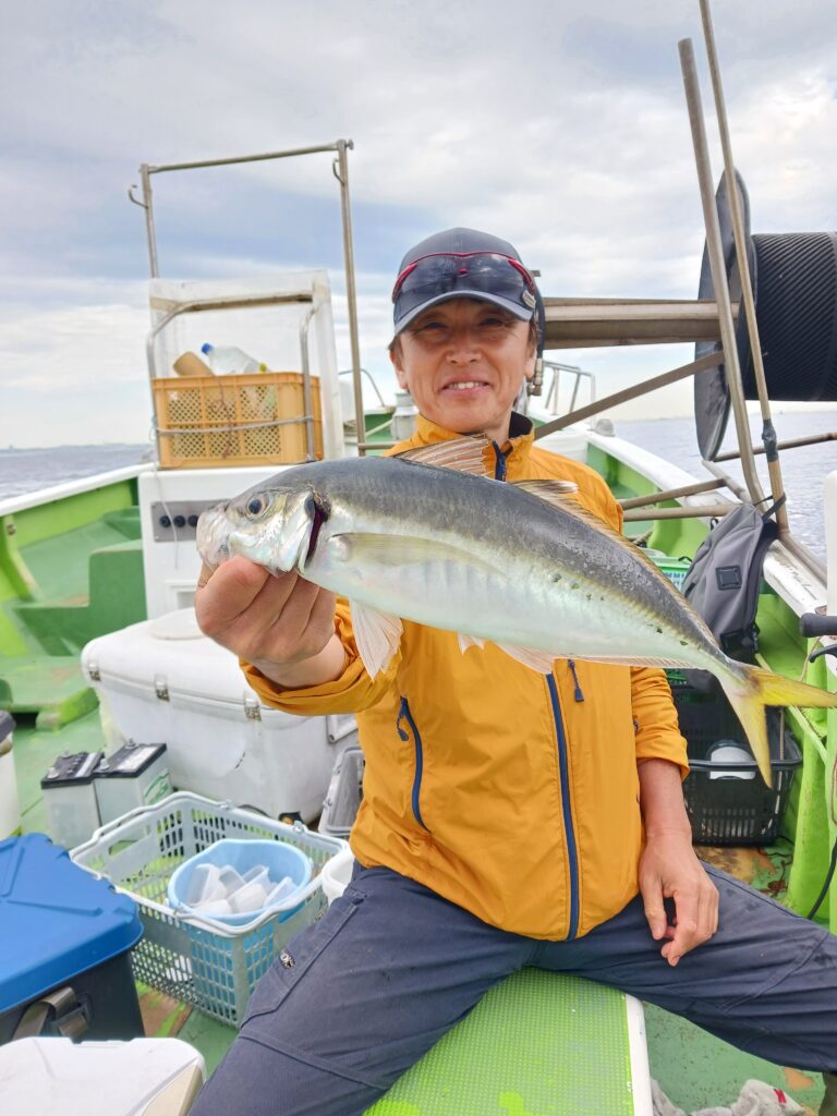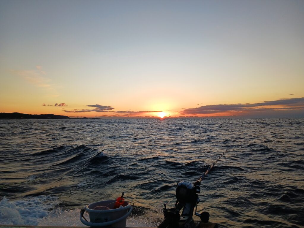 そこで翌週の金曜日に再び東風丸で出船し大アジを狙ってみることにしました。ポイントに着くと漁師の船が二杯ほどいましたが、遊漁船の姿は無く見かけませんでした。ただ魚探にはアジらしき反応が出ており、期待と不安が入り混じるスタートとなりました。
