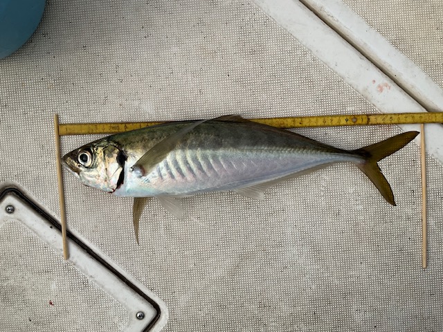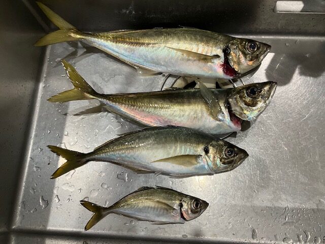 ちょっと細身に見えますが、脂が乗った美味しいアジでした。46㎝を超えるアジを釣ることは無いのかなぁと、そんな思いもあったのですが、ついに悲願の自己ベスト更新という記念すべき一匹となりました。