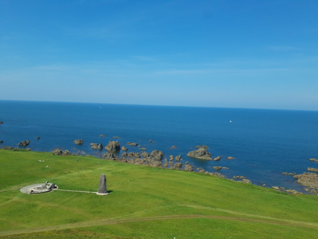 昨日の移動は約800㎞。一日に走った距離としましては、徳島県阿波池田町への出張ツーリングの770㎞を更新して自己ベストとなりました。この日は下北半島を反時計回りに一周する計画です。まずは宿泊地八戸市から更に約110㎞先の尻屋崎灯台に到着。無事にミッションクリアとなりました。うっすらとかかていた雲が少し晴れてくれて、青空が顔を覗かしてくれました。津軽海峡を見下ろす威風堂々とした立派な灯台でした。